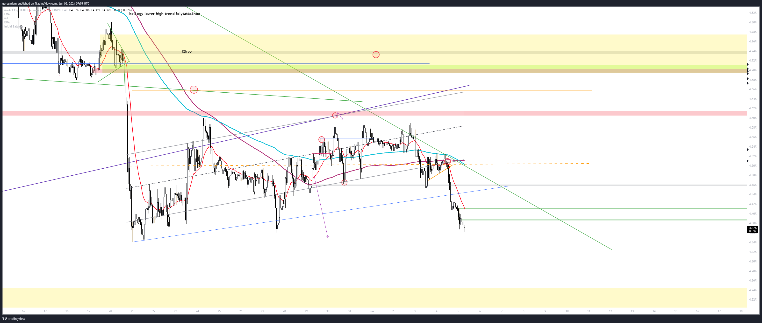 USDT.d legutóbbi kereskedési trigger: a dolgok biztatóak, de még mindig a narancs zónában vagyunk, így még visszafordulhat a mozgás egy időre (ugye ez a zónázás alapszabálya).