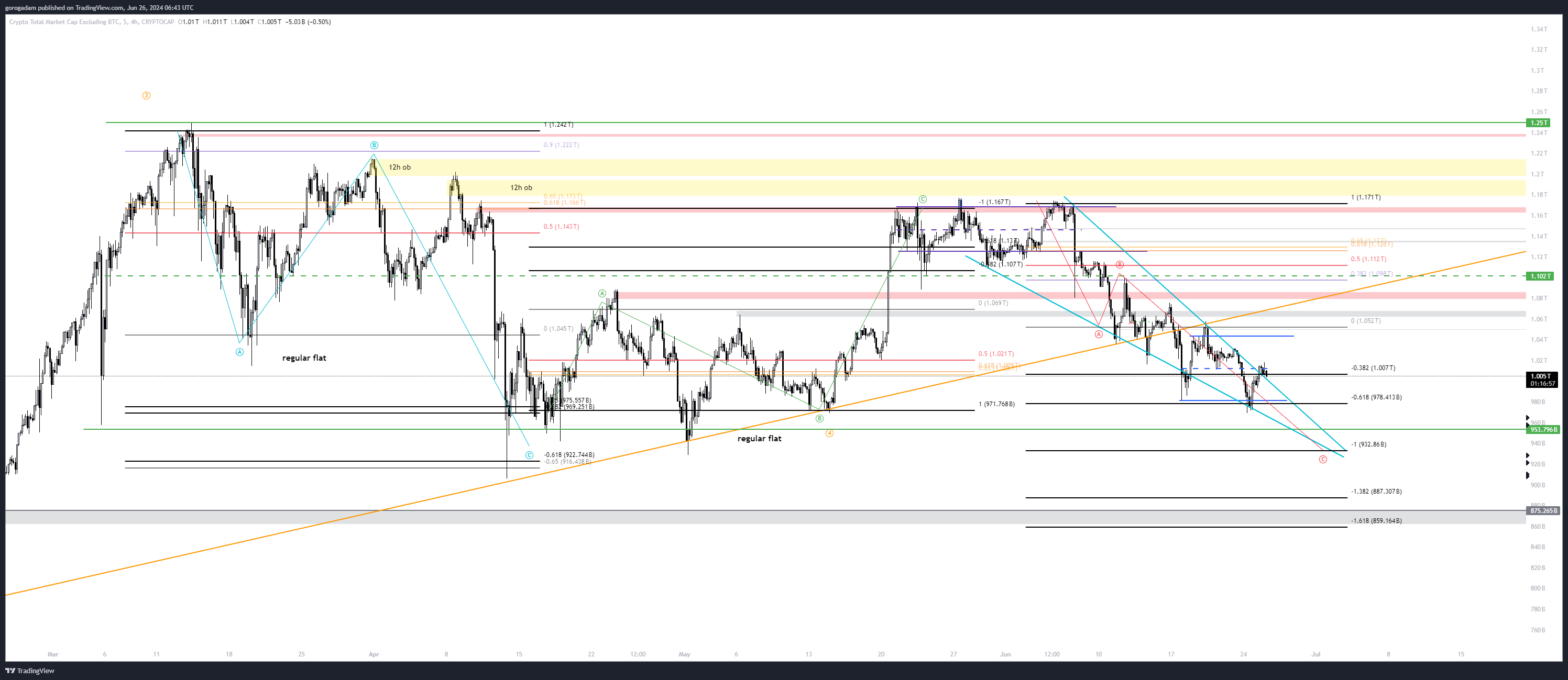 Ez összhangban lenne azzal, amit az egyes coinok chartján látok (pl: ETH-nak lejjebb kellene mennie, de nem sokkal már, PEPE épphogy nem érte el a HTF trendvonalát az alján, OTHERS charton is van ki hely még lefelé).
