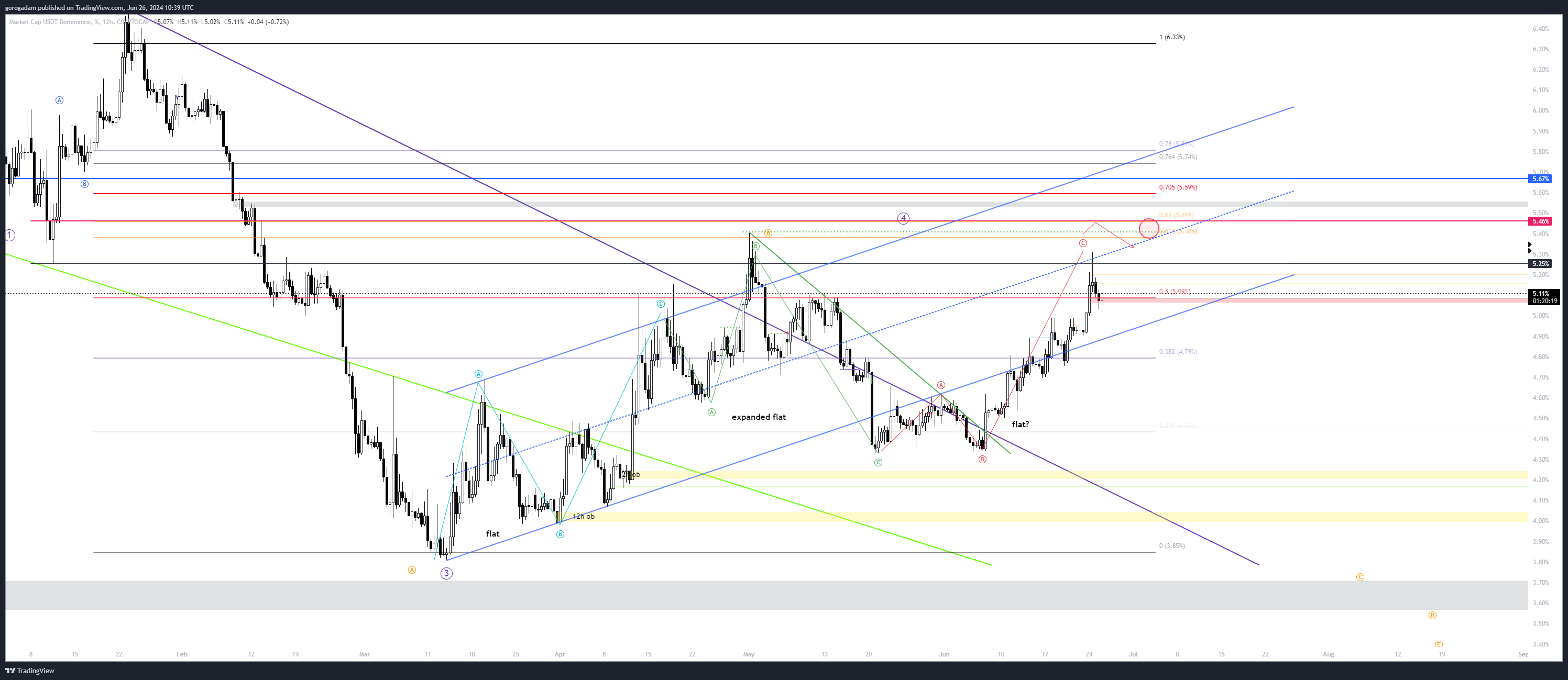 USDT.d legutóbbi kereskedési trigger: a véleményem ezzel kapcsolatban változatlan – szerintem ki fogja ütni a május 1-ei csúcsot, és onnan fordulhat le.