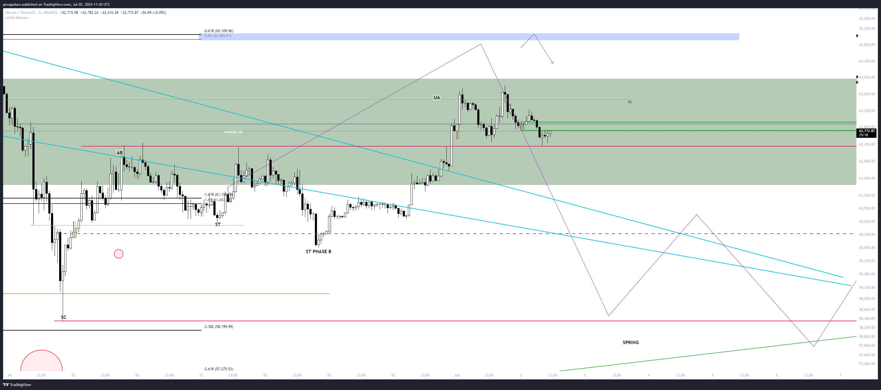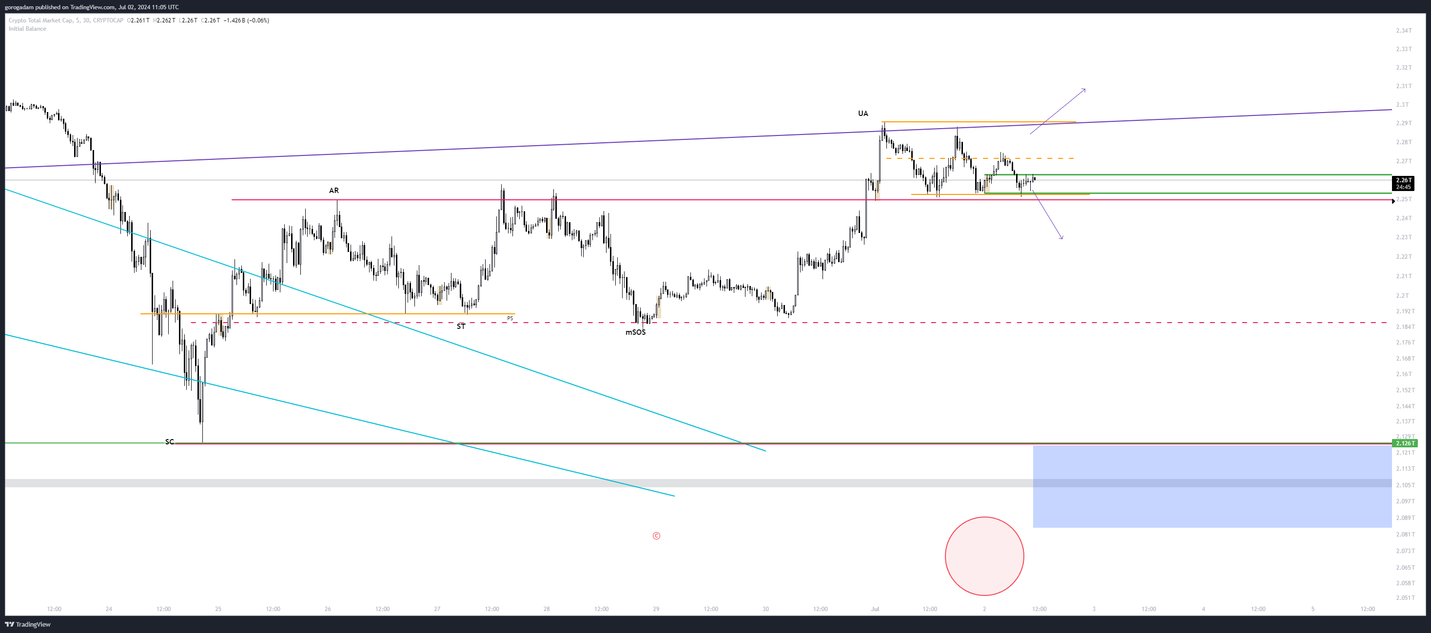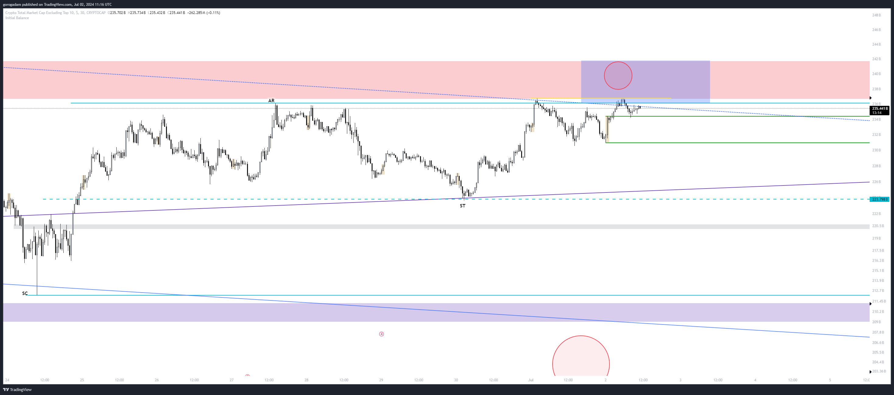Sokkal inkább arra számítok, hogy visszaesik a zónába az árfolyam, és deviálja a túloldalt is majd, ezzel elérve a coinokon a végleges céláraimat.