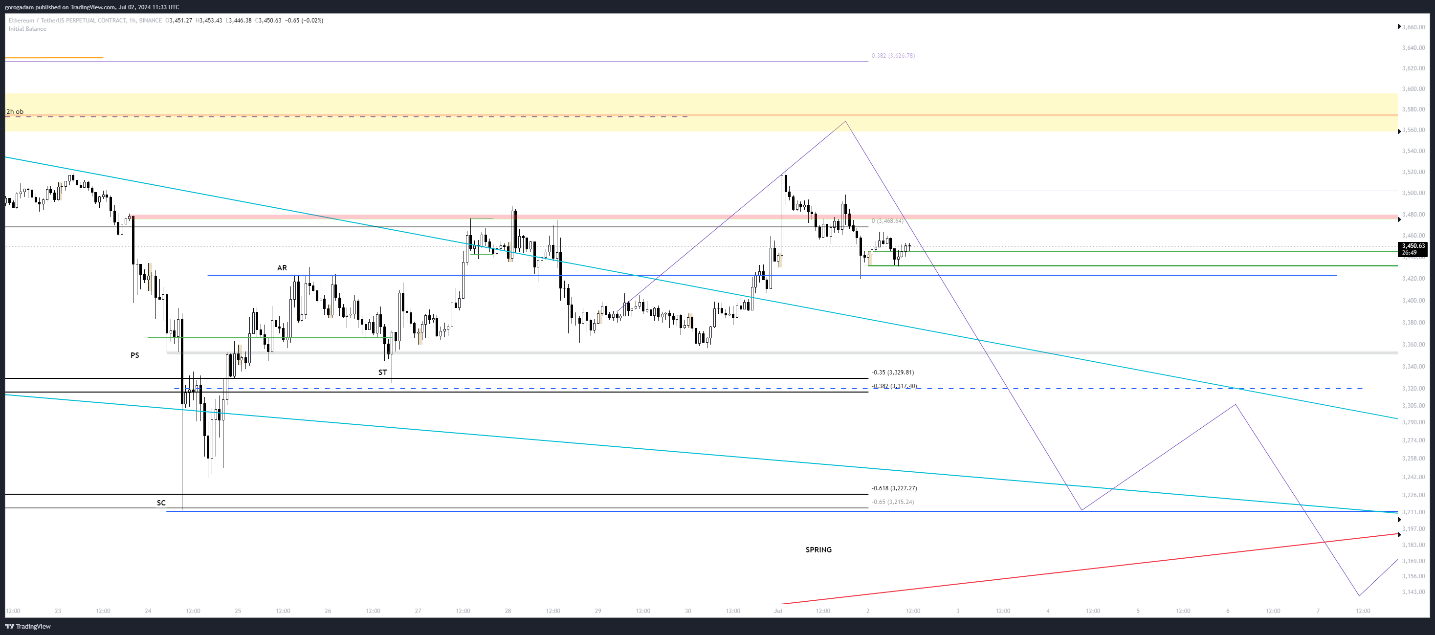 3560-nál van egy nagy 12 órás OB, ami egy jelentősebb elutasítódást okozhat, ezért ezt figyelem reakcióért, illetve ha esetleg még előtte visszaesne a kék zónába short triggernek.