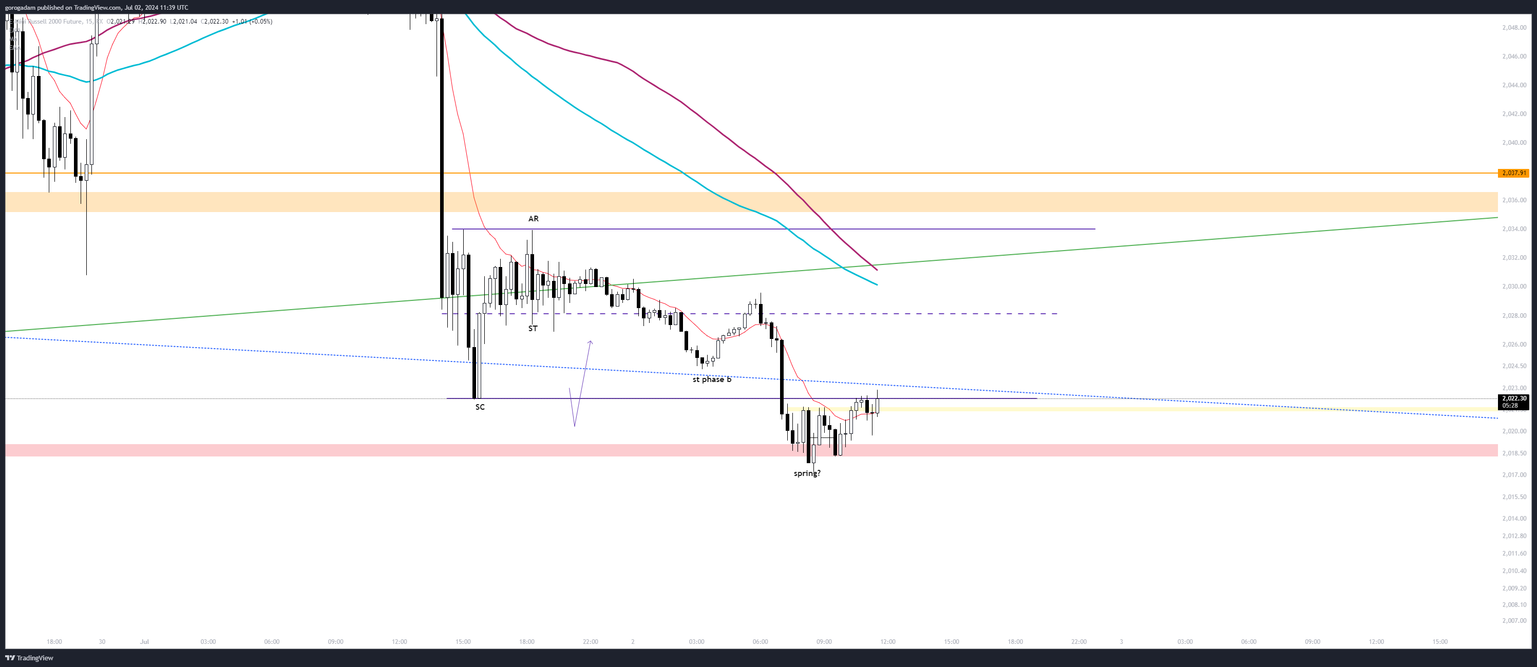 Ha sikerül kitörni innen felfelé (egyben visszaszerezni a lila trendvonalat), akkor szvsz megvolt a piac alja. Ezt tartom a kevésbé valószínű szkenáriónak, de ebben az esetben max long.
