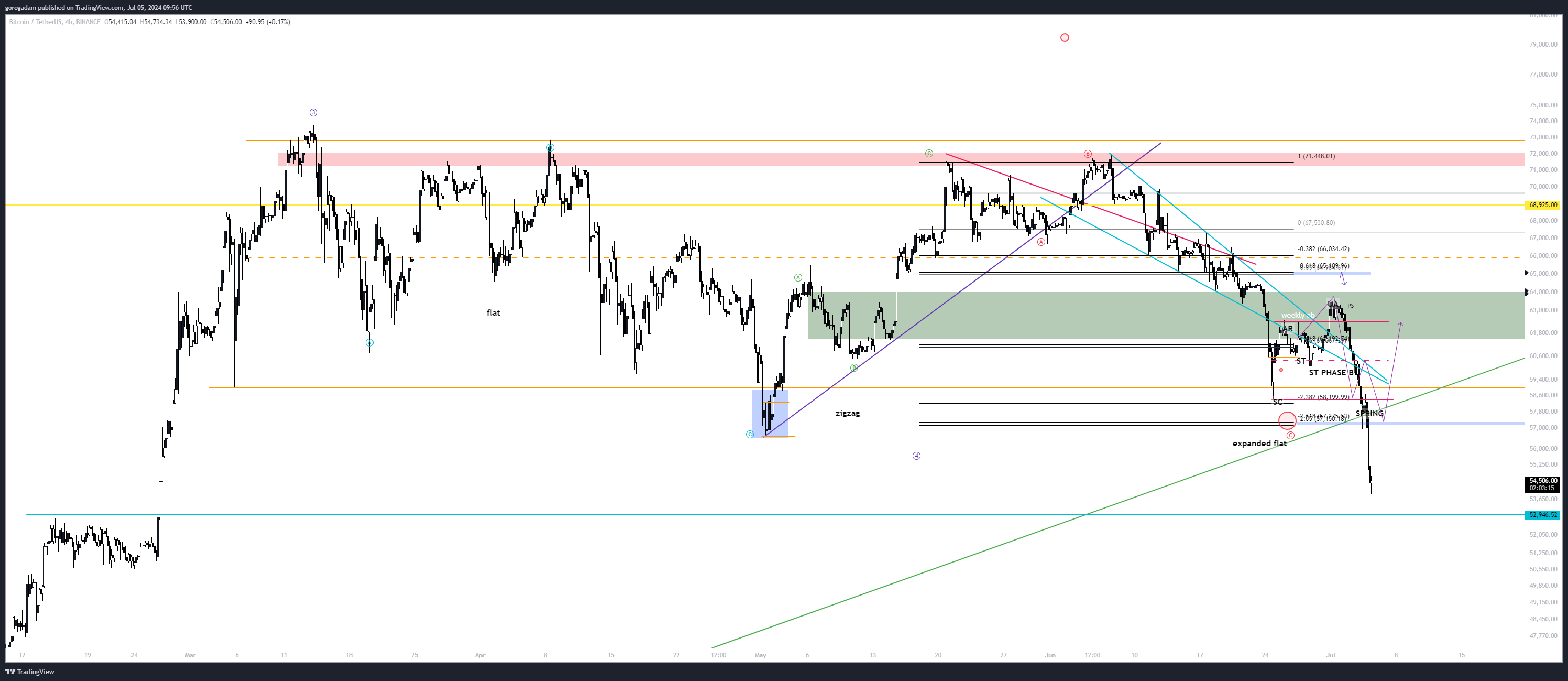-a kékkel jelölt 52 946$-os szint annyira egyértelmű, annyira minden kezdő ezt várja, hogy én azt mondom, hogy ha ennek a tesztelésére van szükség, mondom, akkor már sokkal lejjebb megyünk inkább (ilyen ritkán van, hogy kényelmes belépőt ad a piac egy ilyen egyértelmű szinten)
