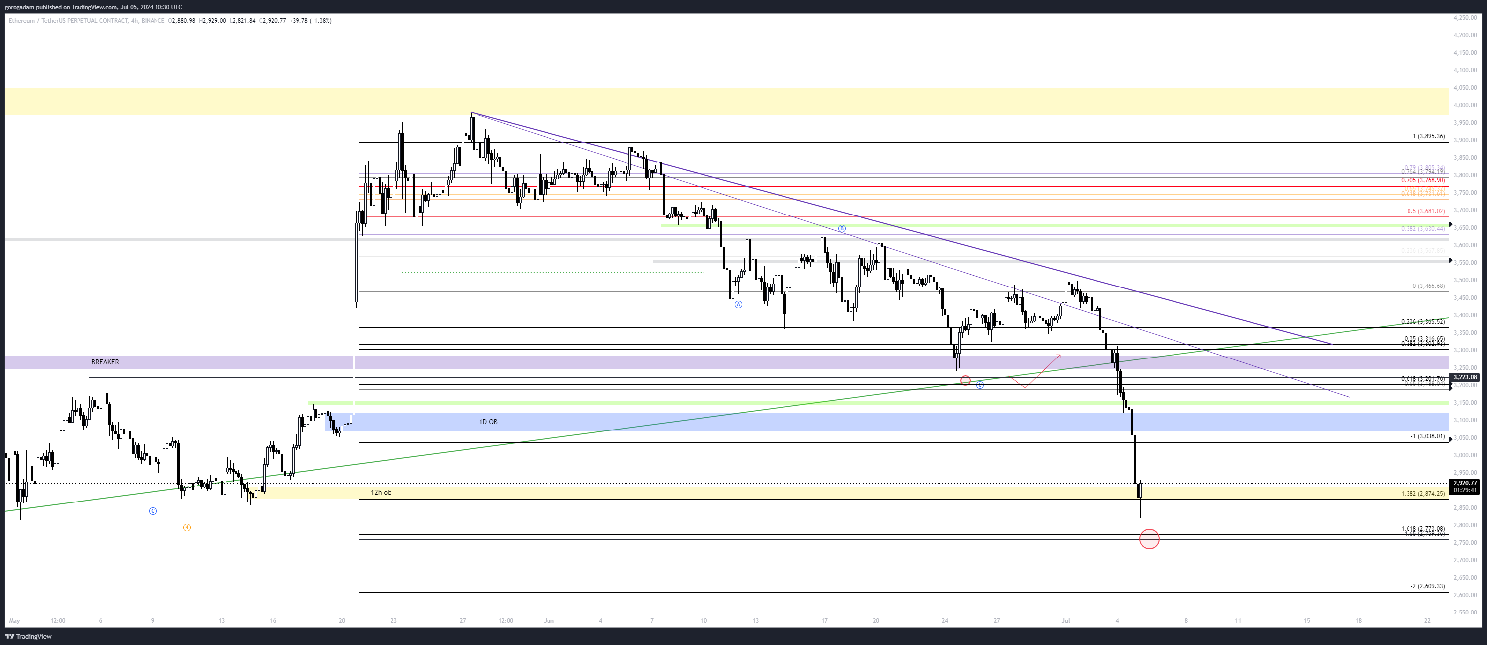 2773$ lehetséges, ha mélyebbre megy, ez egy érdekes szint (-1.618 FIB), másképp feljebb keresnék csak longot, mert addig a BTC jobb lehetőséget ad.