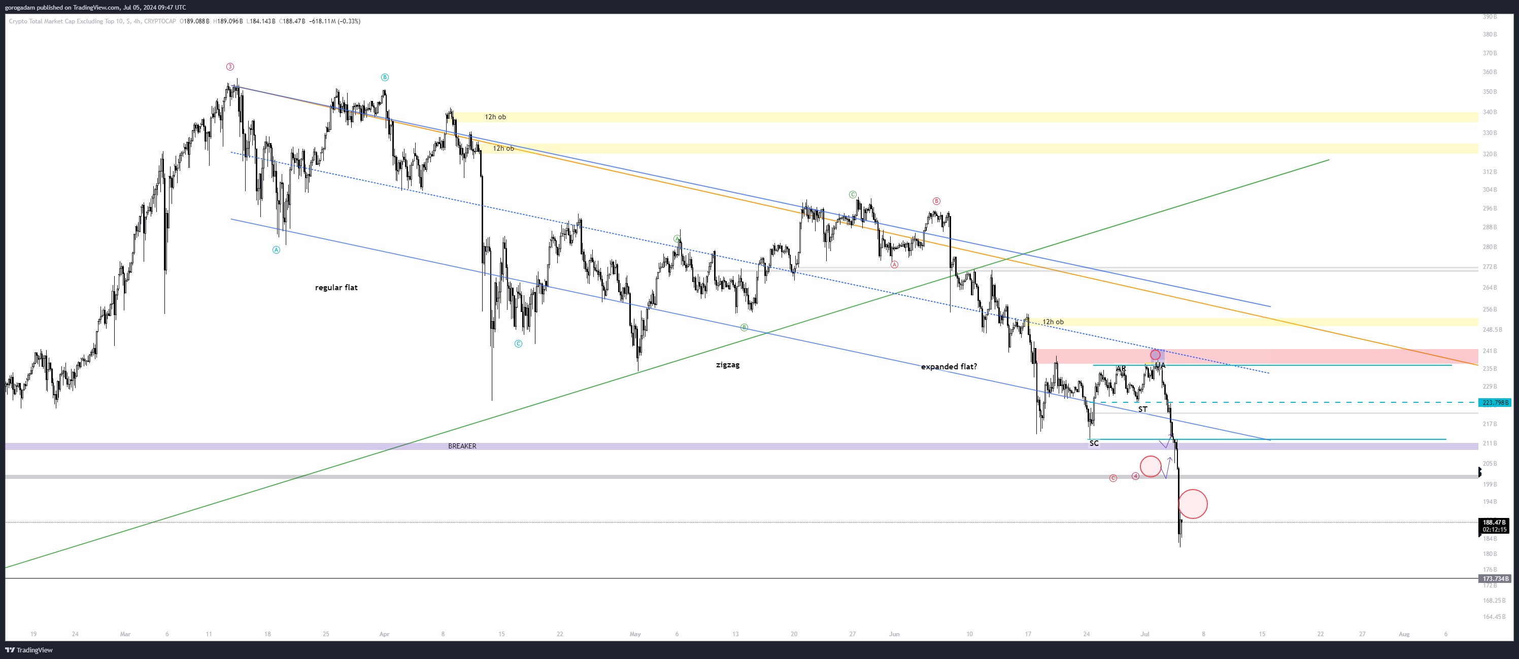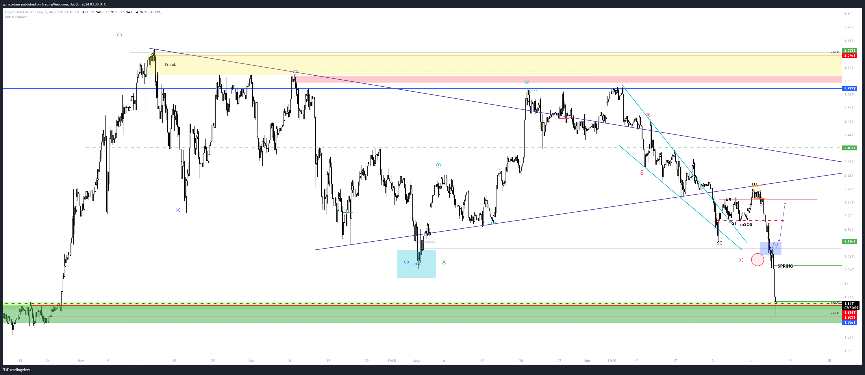 Én azt gondolom, hogy a market makereknek volt egy terve létrehozni egy Wyckoff akkumulációt (amiről napok óta beszélünk), és most valaki beleöntött a medvecsapdába még egy nagy rakás eladást (pl: MT Gox Bitcoin, német BTC eladás), így jóval lejjebb ment a piac, mint tervezték.