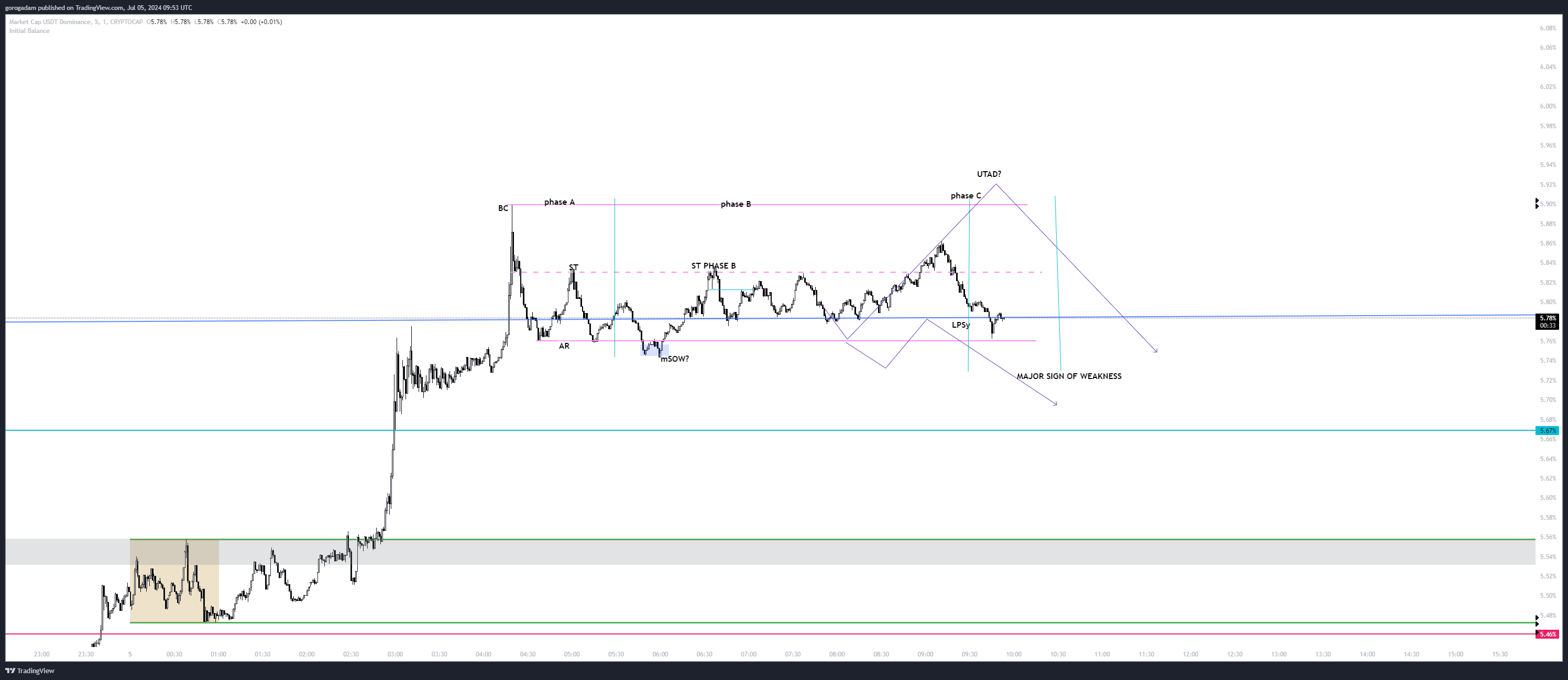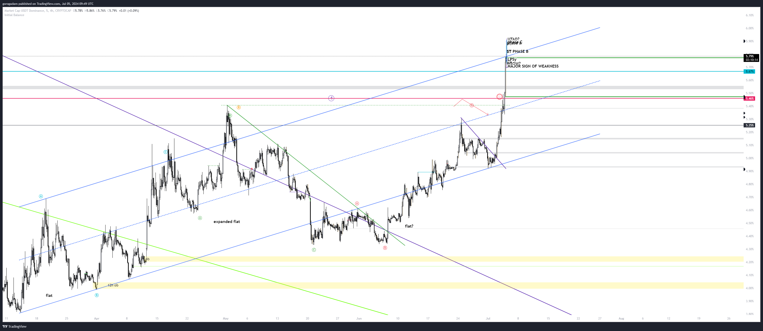 USDT.d legutóbbi kereskedési trigger: Felért a csatorna tetejéig. Egy olyan szinten van, ahol szerintem nem szabad napot zárnia, de még hosszú nap áll előttünk.