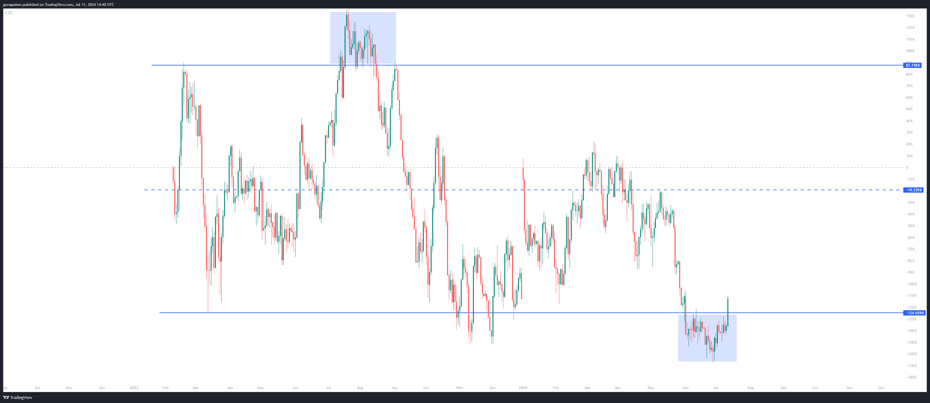 -a napos CVD-n láthatjuk, hogy jelenleg a zóna alatt van az árfolyam – ha visszaszerezné, akkor szintén újraértékelném a szituációt