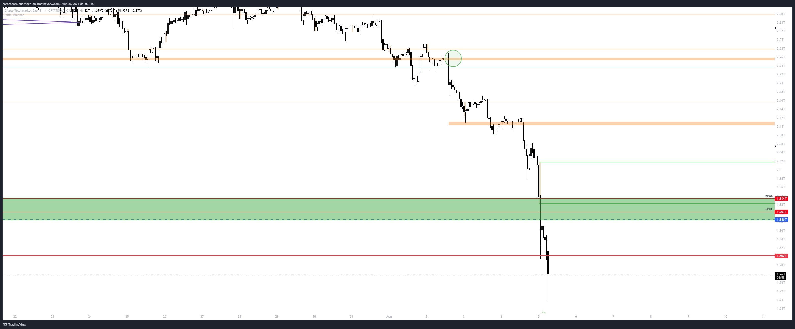 A TOTAL-on, TOTAL2-n, BTC-n is van rá lehetőség, ETH-n nem, ezért bár nem akarok ez alapján arra következtetni, hogy közel az alja, de ez ad rá egy komolyabb esélyt, hogy a mostani és nem lejjebbi szintek állítják meg az esést.