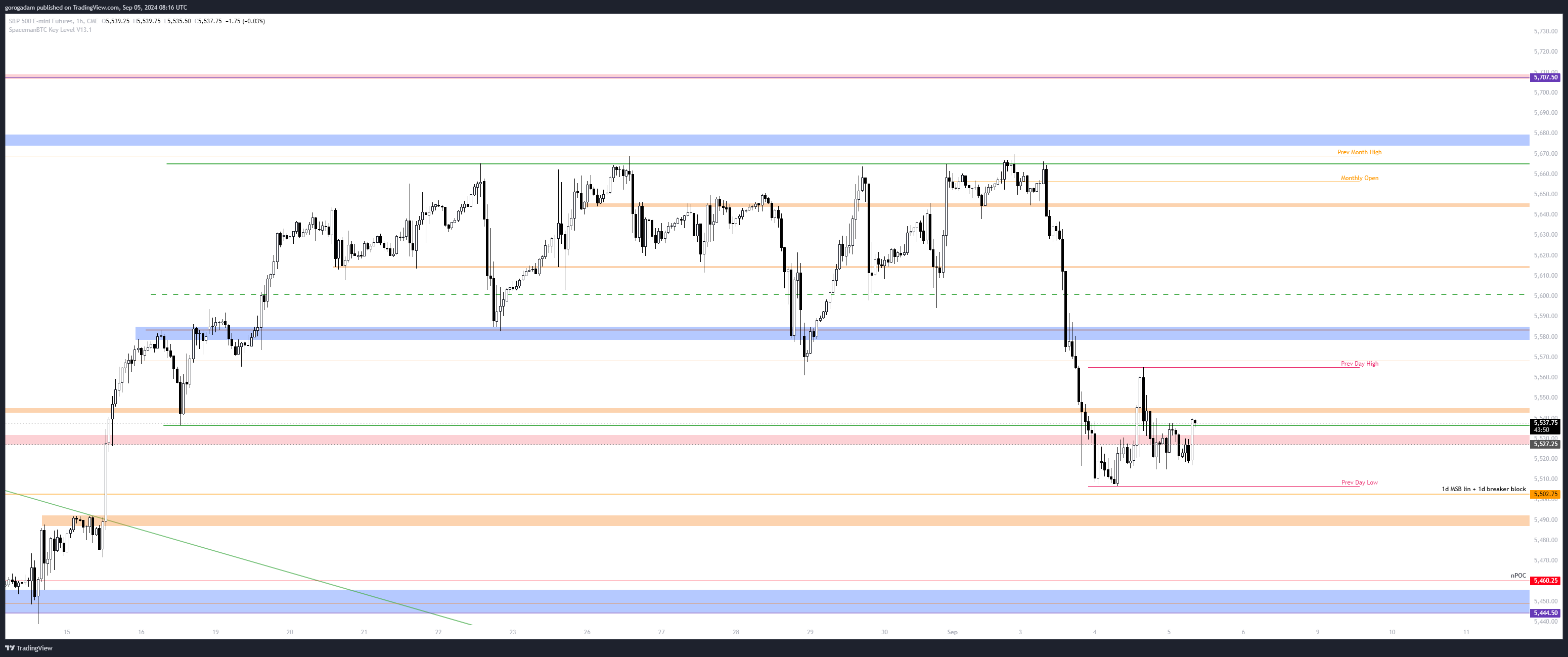S&P 500 elemzés – LTF helyzet: legutóbb ezt írtam: „az első jel, hogy gyengül a piac, az 5645-ös szint elvesztése lenne”. Elvesztette, és lezuhant a zöld zóna alá.