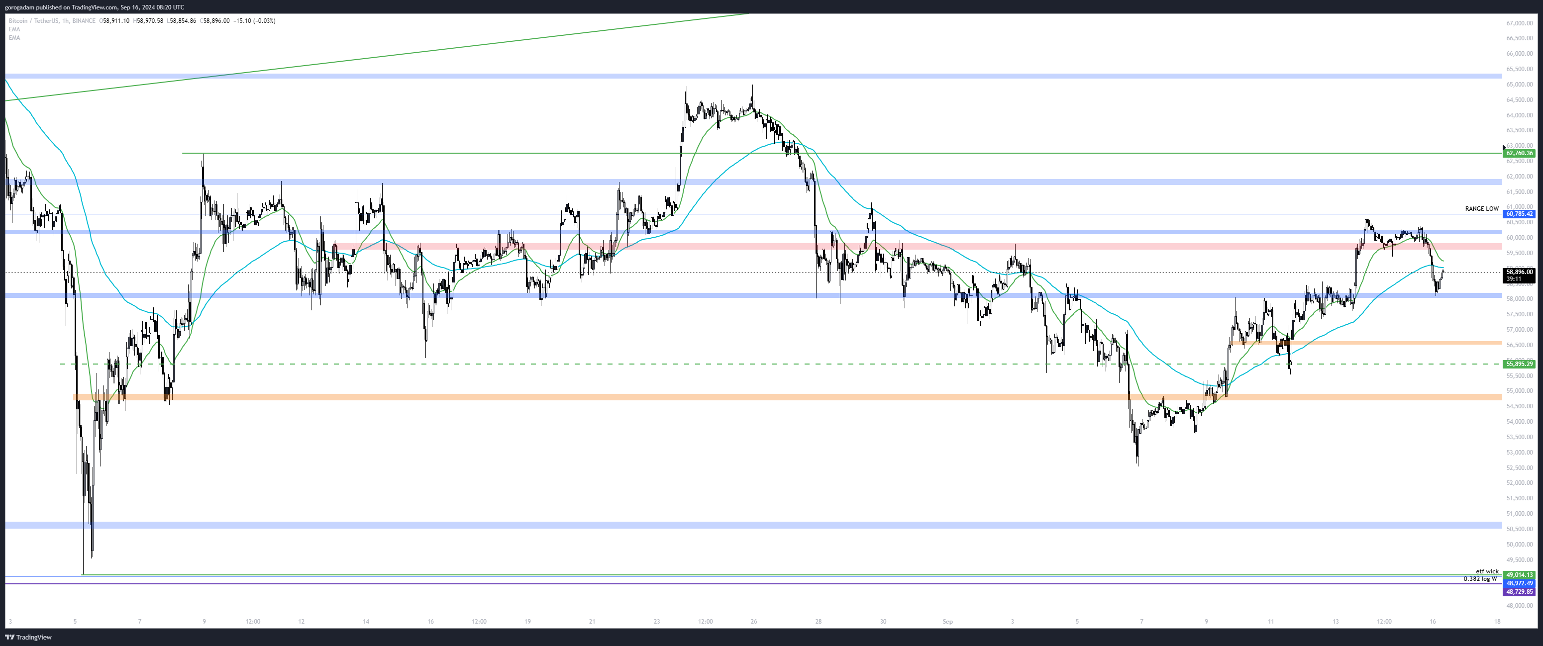 BTC elemzés – LTF helyzet: 58 100-at most fordította támasszá az árfolyam, ez is egy megerősítés volt altok longolásához. Szerintem a 62 000-es szint tesztje következik majd, de ez még odébb van, és persze az FOMC óriási rizikót ad hozzá.