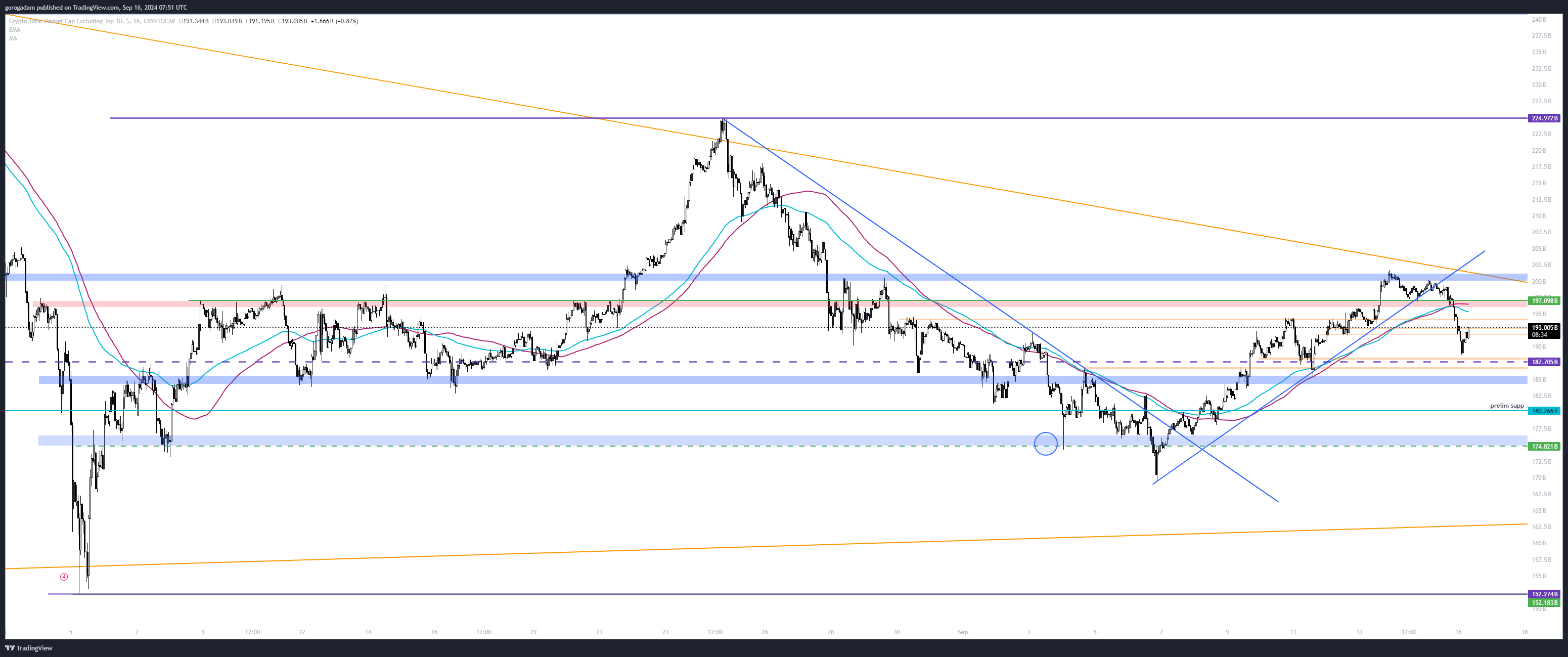 185B támasszá fordítása lehetne jó long lehetőség, vagy 200B áttörése és utána támasszá fordítása.