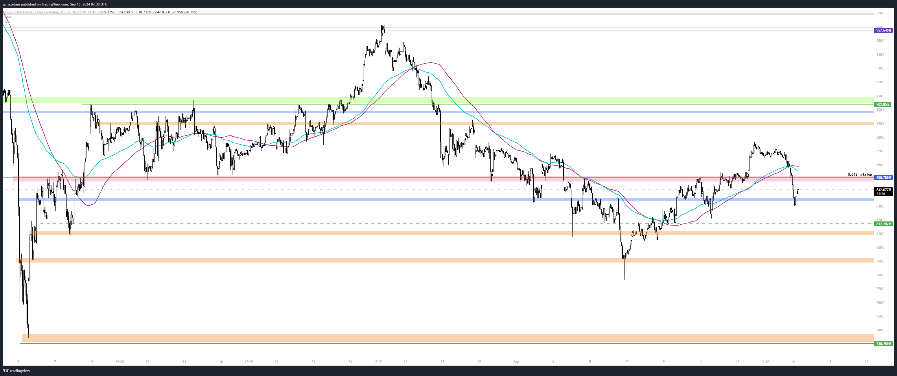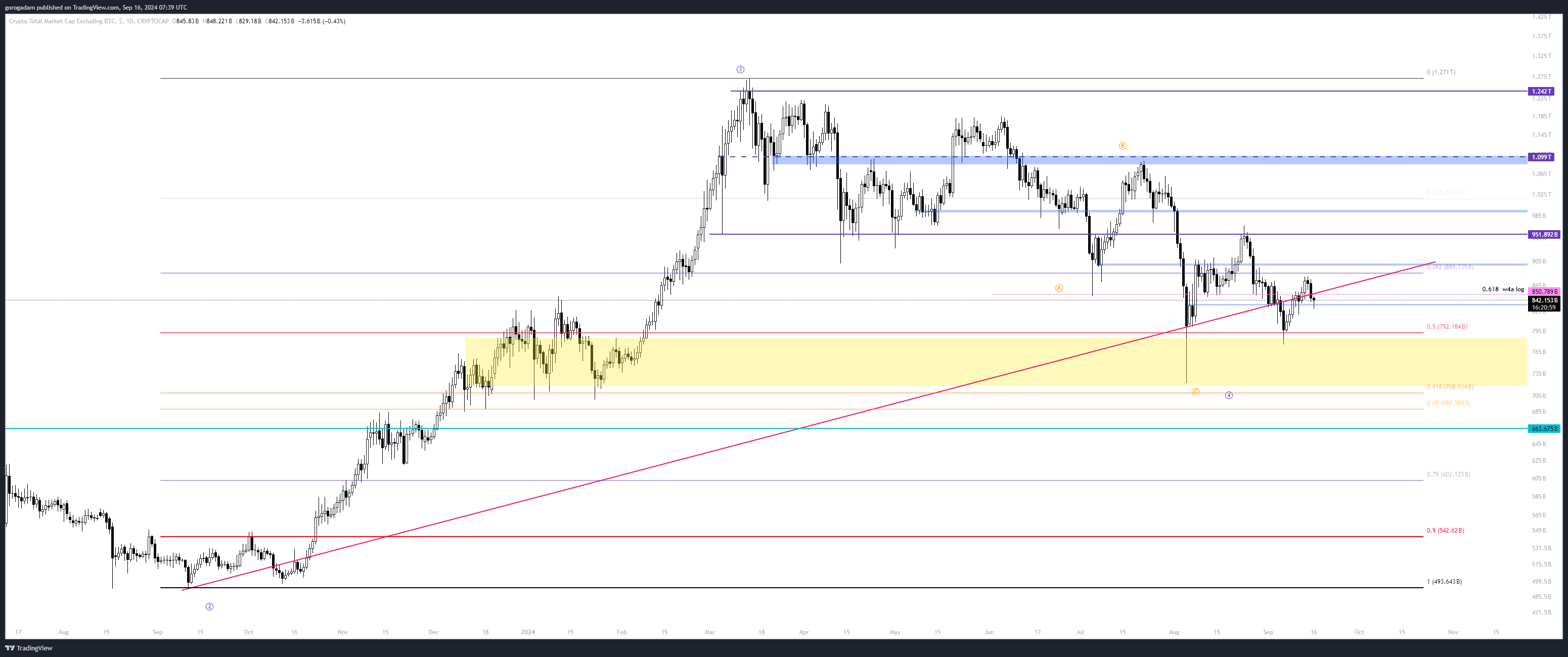 TOTAL2 elemzés – LTF helyzet: ha visszaszerzi a 850B-s szintet, akkor ez egy failed breakdown, és szerintem felmehet 900B-ig (korábbi leszakadás kiindulópontja + napos szint).