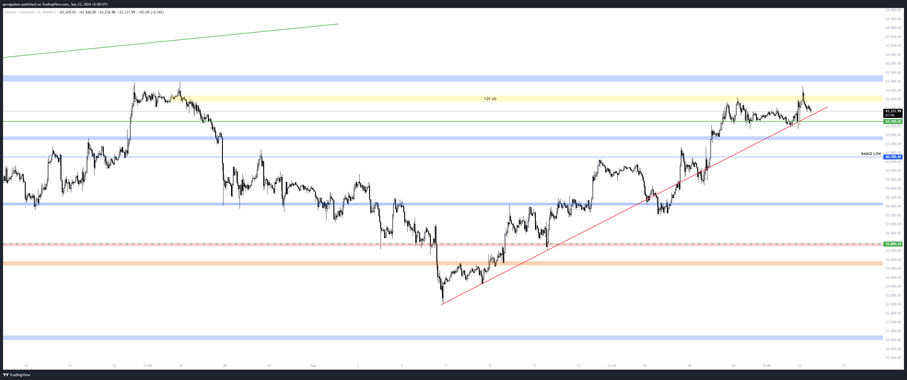 BTC elemzés – LTF helyzet: nem kell túlbonyolítani, igazából, ha 62760 alá esik tartósan, vagy ellenállássá válik, akkor short, az első célár 59800 lenne.