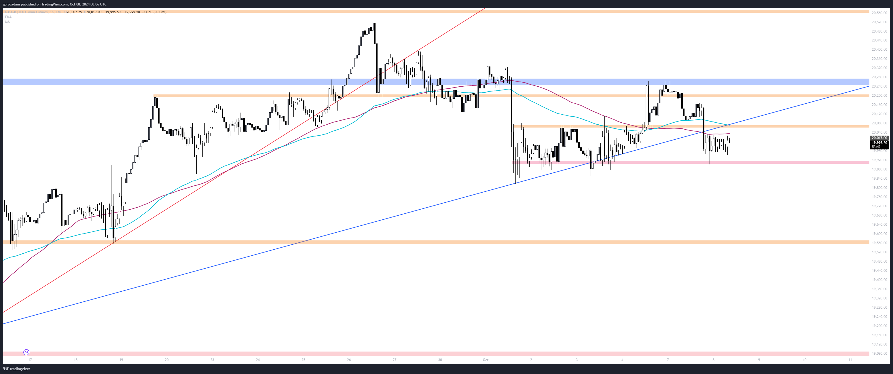 NQ elemzés – HTF helyzet: (megj: ezúttal normál, nem logaritmikus chartot oszottam meg lent) NQ-n a bikák elvesztették a 20 200-as szintet, sőt, ellenállássá is alakult most egyelőre, így most a medvéknél a kontroll.