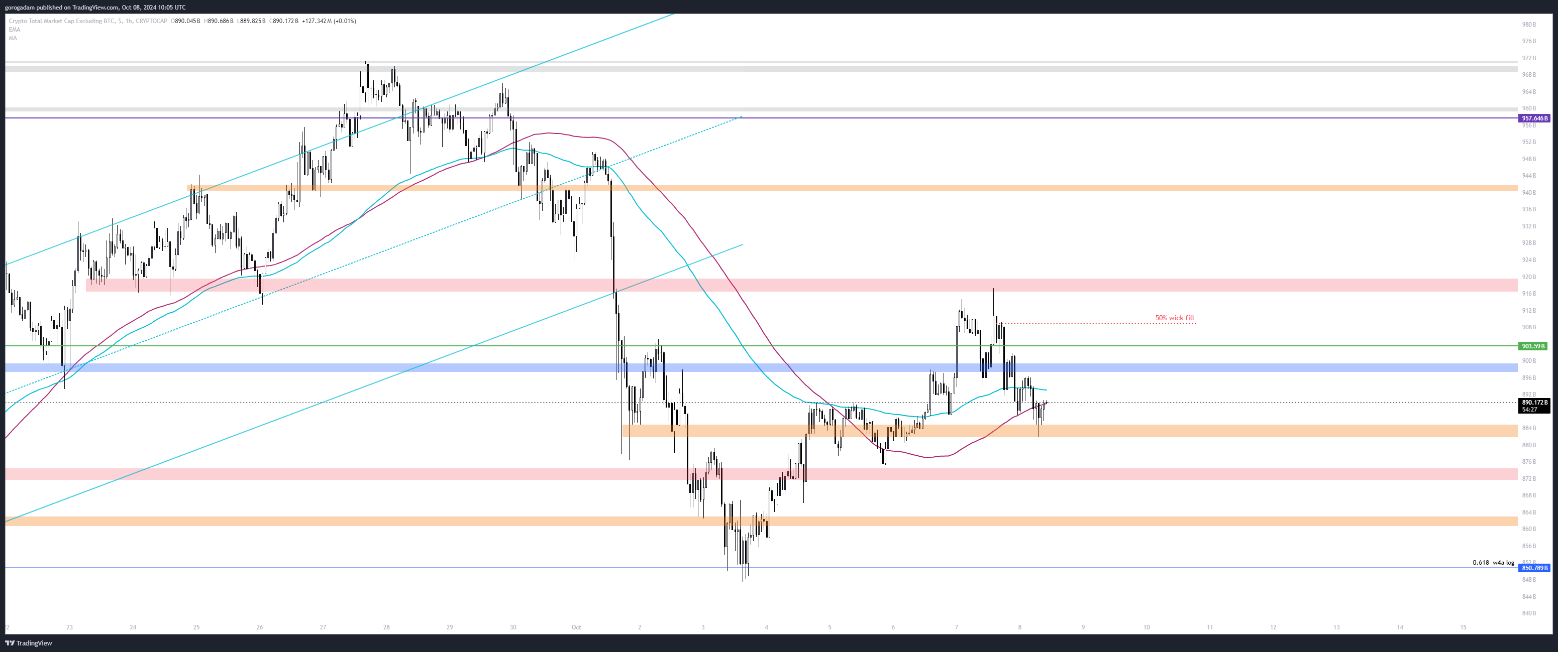 Most egyelőre a kaptunk egy failed breakdown felállást a 875B-s szintnél, de ha azt is elveszti az árfolyam, akkor jelentős esés jöhet.