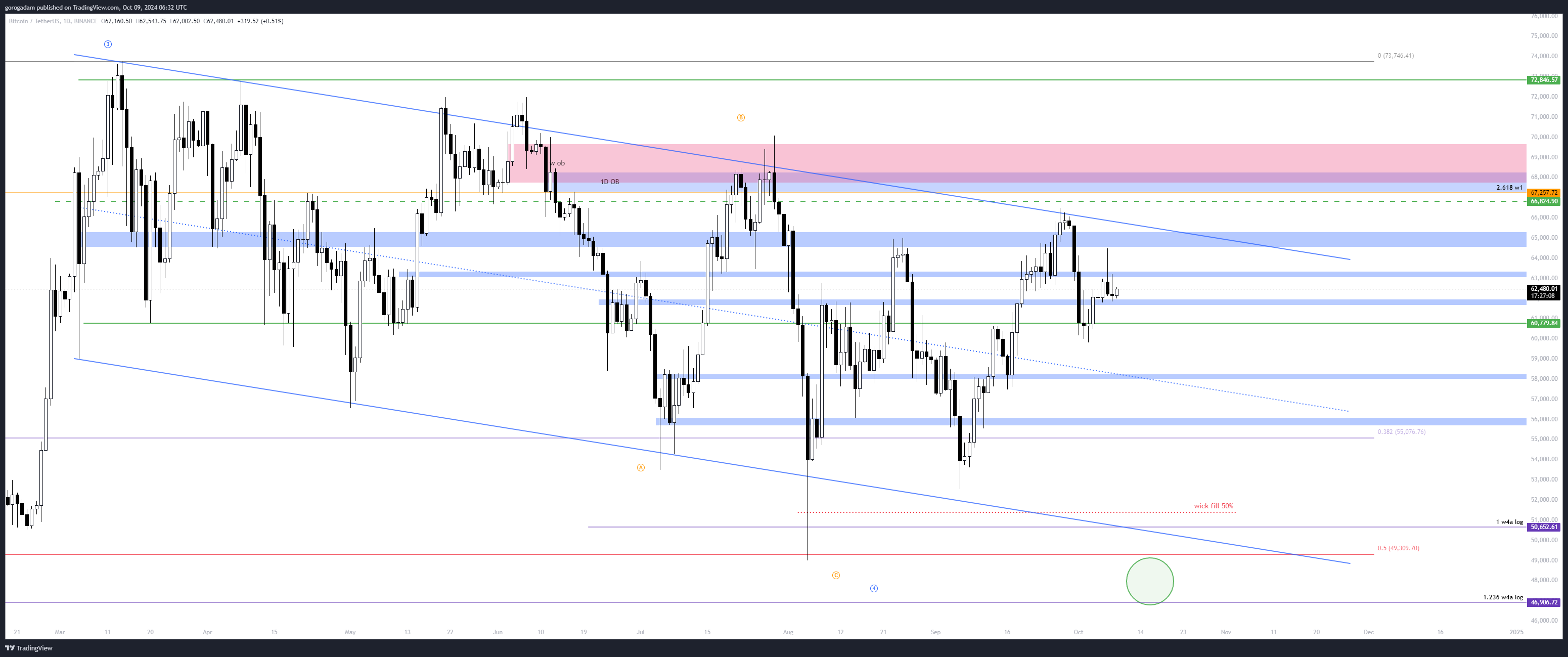 Persze ettől még jöhet egy emelkedés betölteni 50%-ig ezt a kanócot, sőt nagyon is lenne értelme, ezért érdemes óvatosnak lenni – 61 800 elvesztése könnyebbé tenné a helyzetet