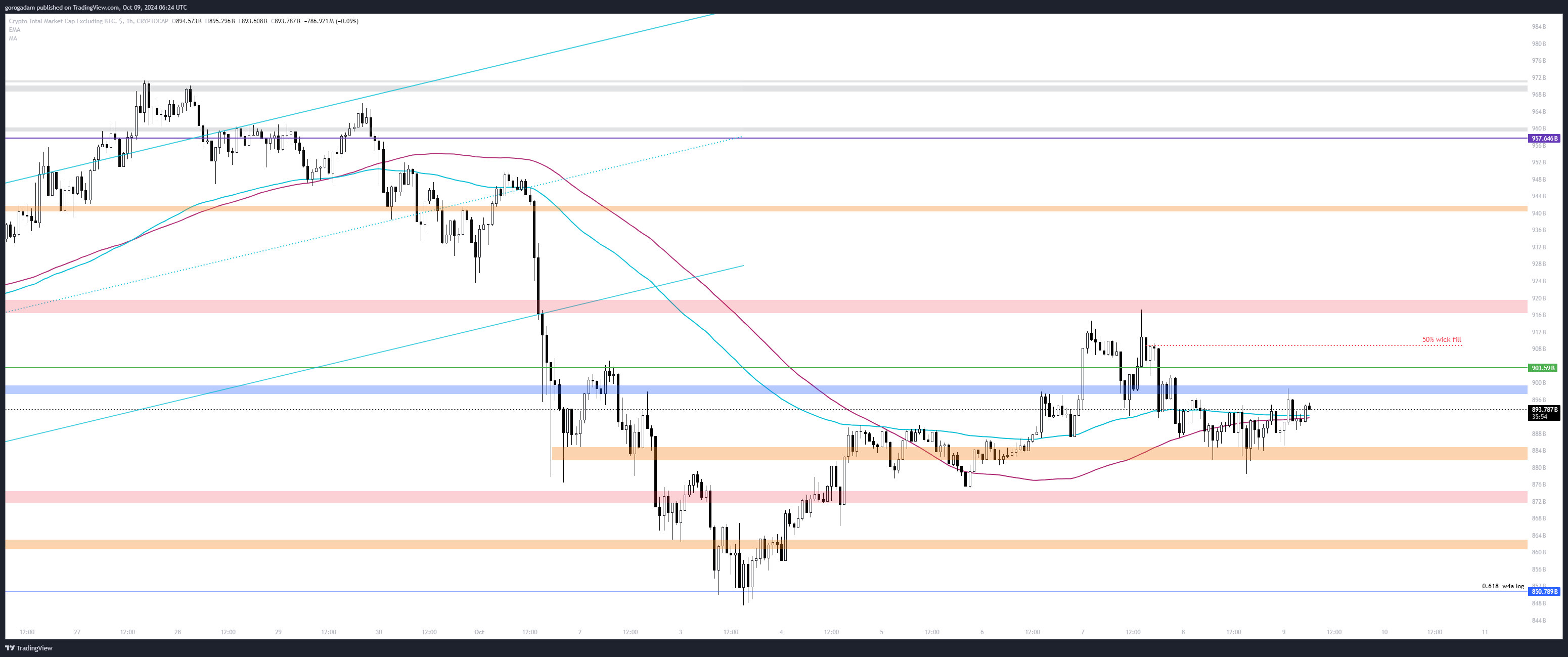 Most egyelőre a kaptunk egy failed breakdown felállást a 875B-s szintnél, de ha azt is elveszti az árfolyam, akkor jelentős esés jöhet.