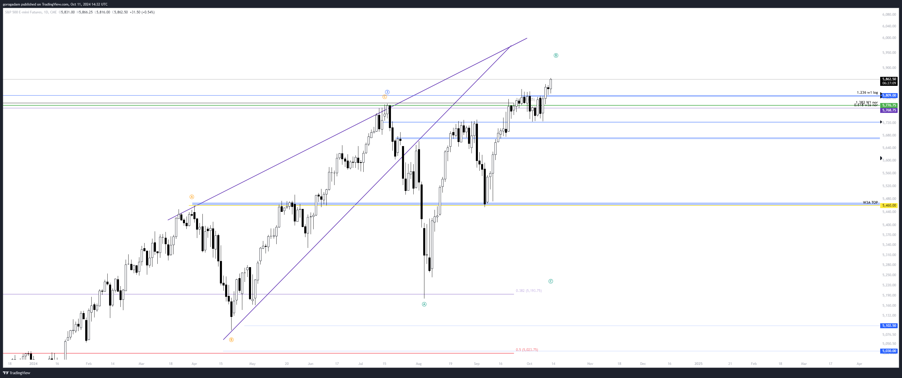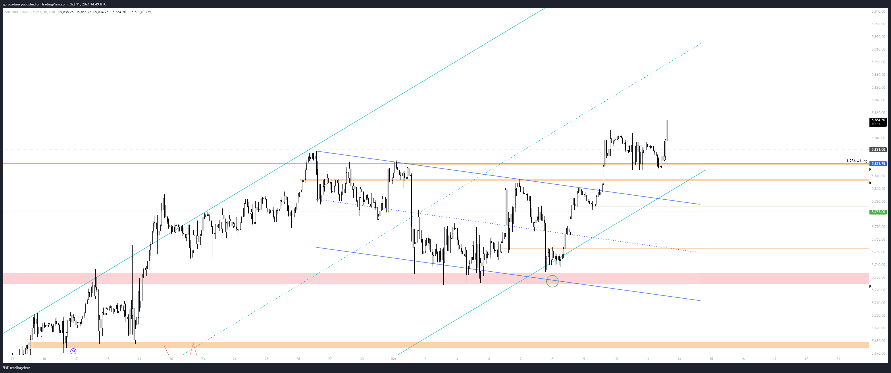 5809: napos ellenállás, ami épp most áttörésre került, ha deviálja az árfolyam, az medvés, ha folytatást látunk LTF-en, akkor könnyű long (bár más célárat nem látunk ATH szint lévén)