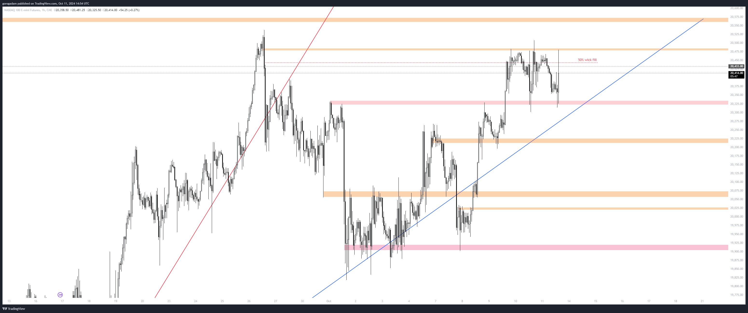 20 325: többször tesztelt támasz, aminek a letörése legalább egy átmeneti kontrollvesztést jelentene a bikák részéről, így short trigger lenne – kell valami jel a piacnak, hogy fordul az irány, és a market makerek lehet, hogy pont itt alakítják ki ezt
