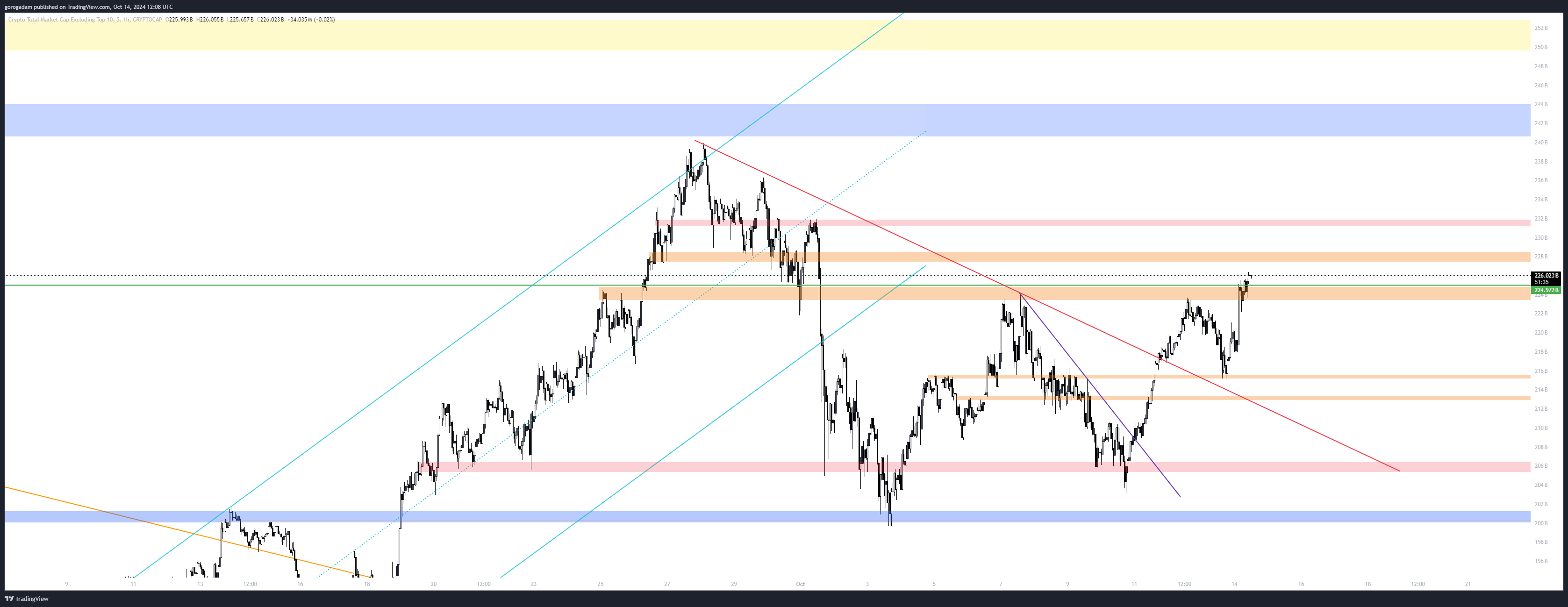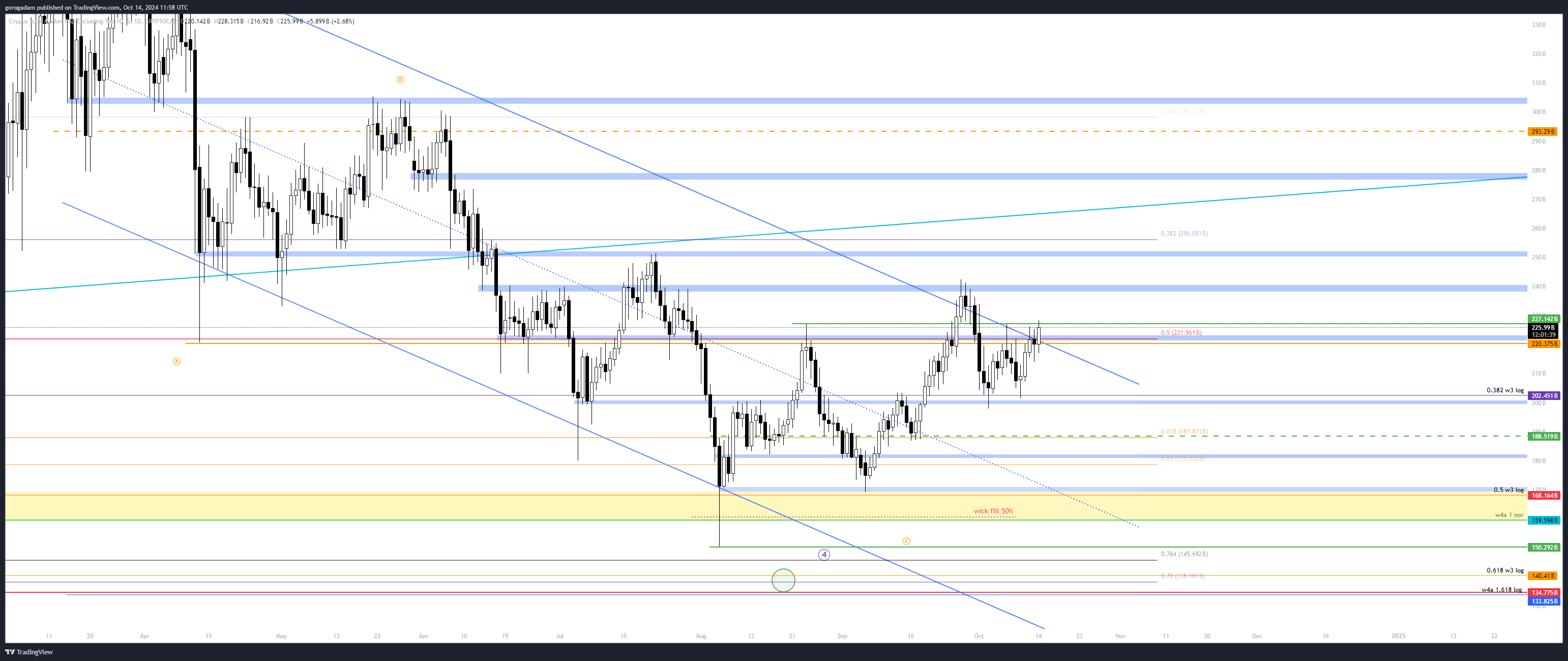 OTHERS elemzés – HTF helyzet: zöld zóna tetejénél van, ha sikerül napos időtávon kitörnie belőle, akkor nagyon bikás, másképp ez csak egy medvés visszateszt, ami a 220B-s szint elvesztésével kerülne igazolásra.