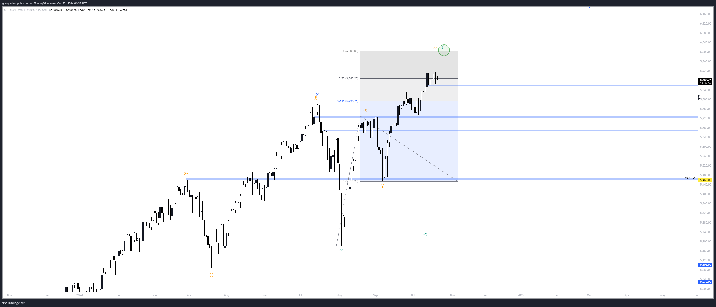 S&P 500 elemzés – HTF helyzet: a 6000$ egyre valószínűbb szkenárióvá válik, egyedül az 5860-as szint elvesztése jelentene gondot ebben a tervben.