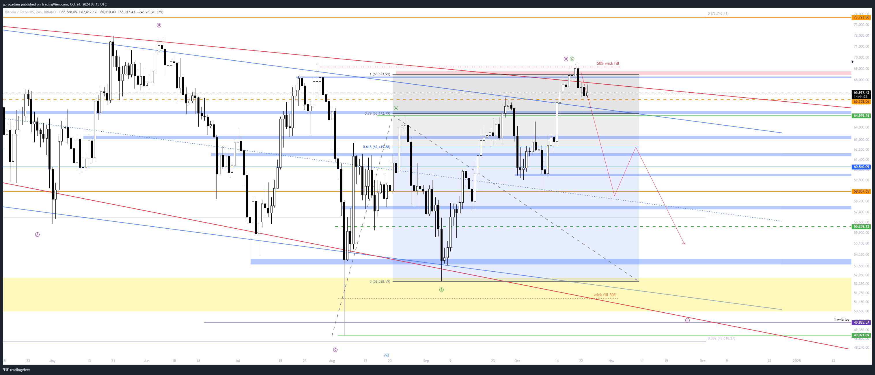 Ez egy jelenős szint, így ha még egyszer elveszti, az mindenképp jelentős lenne, de szerintem a 65 000-es HTF szintről még pattan az árfolyam (tehát ha 66 800 elvesztését shortolja valaki, akkor 65e-nél profitot kell realizálni).