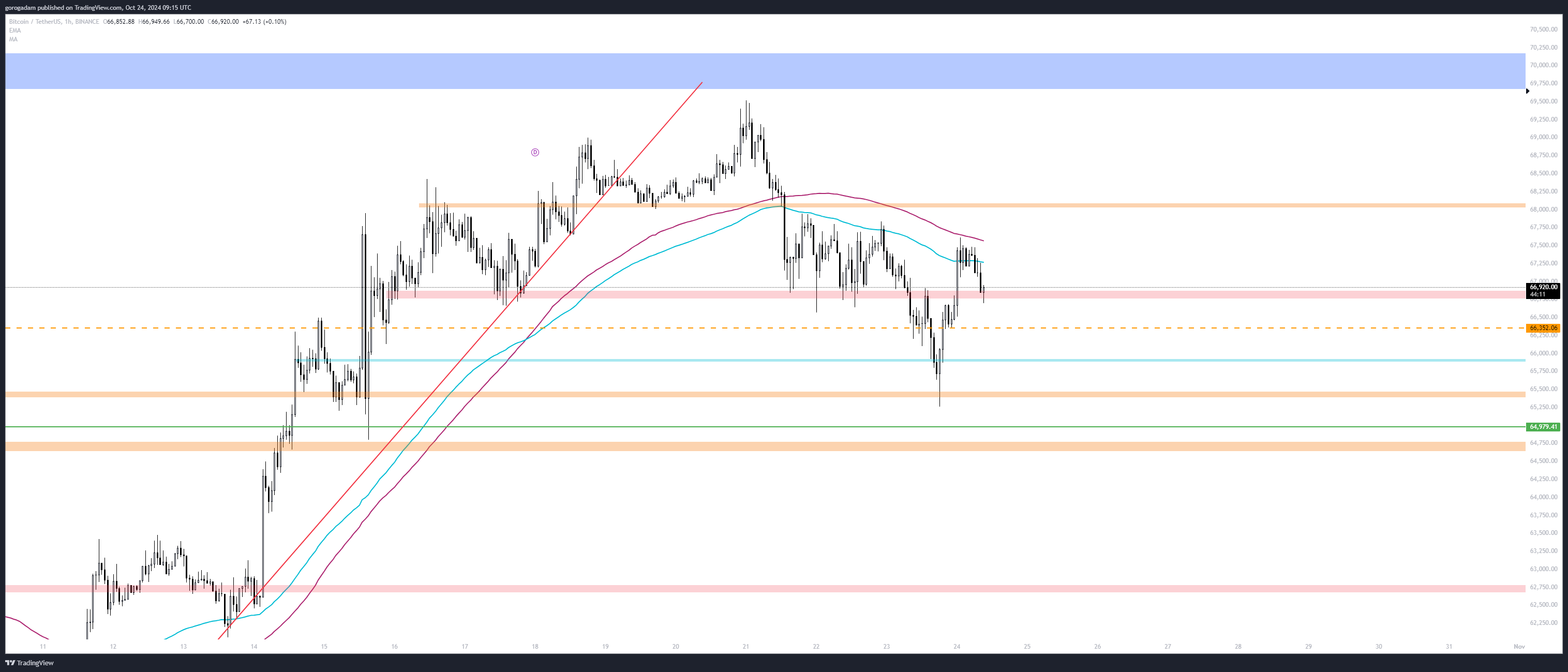 BTC elemzés – LTF helyzet: tegnap bement az árfolyam 66 800 alá, majd sikerült visszaszerezni.