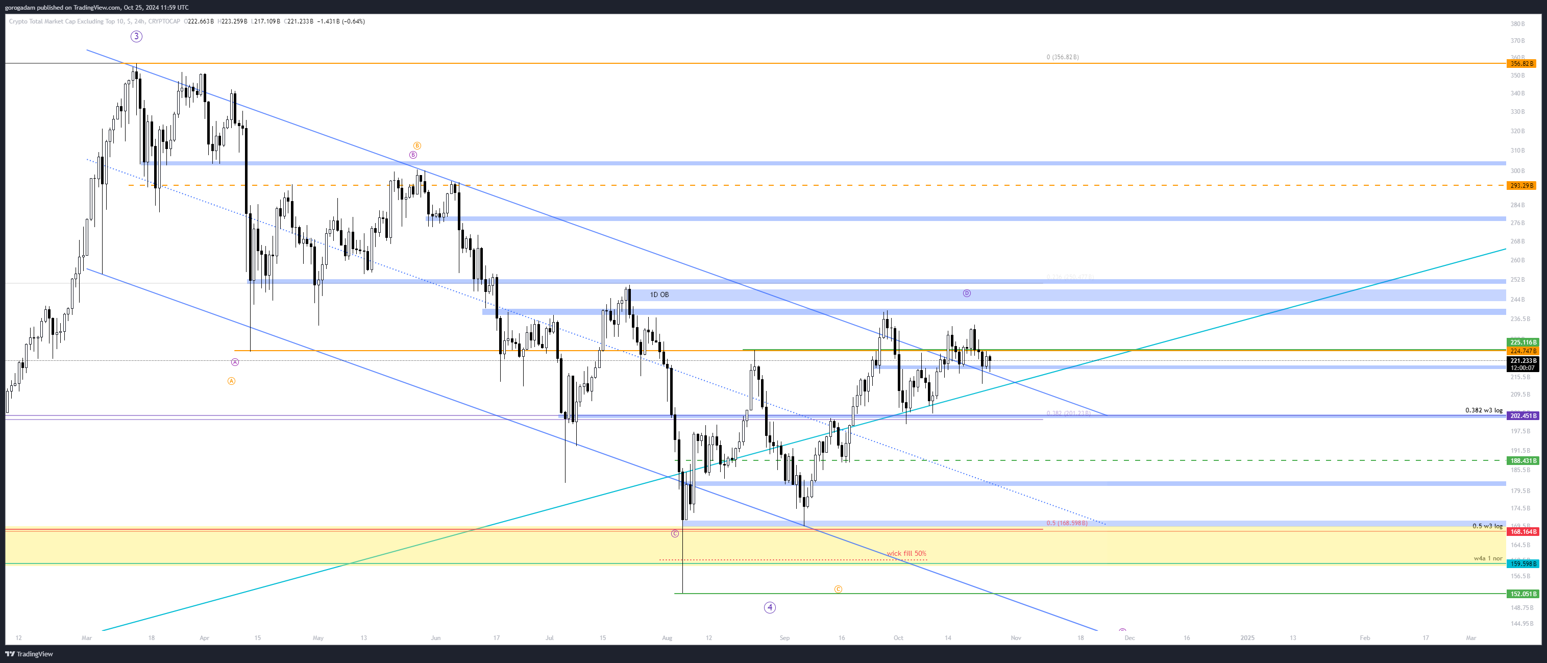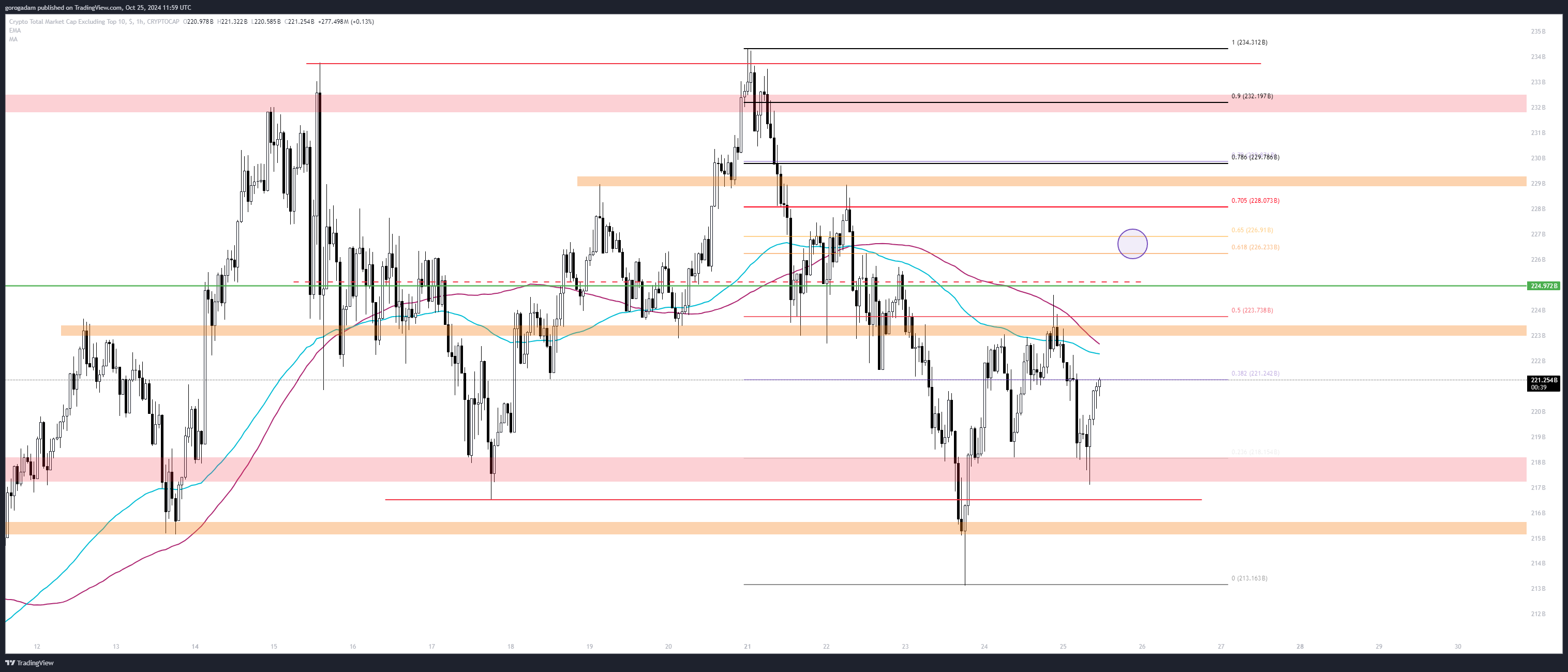 OTHERS elemzés – HTF helyzet: az árfolyam sokadjára teszteli a 219B-s szintet, failed breakdown is volt már, ha ismét aláesik, akkor 200B-ig tiszta az út lefelé.