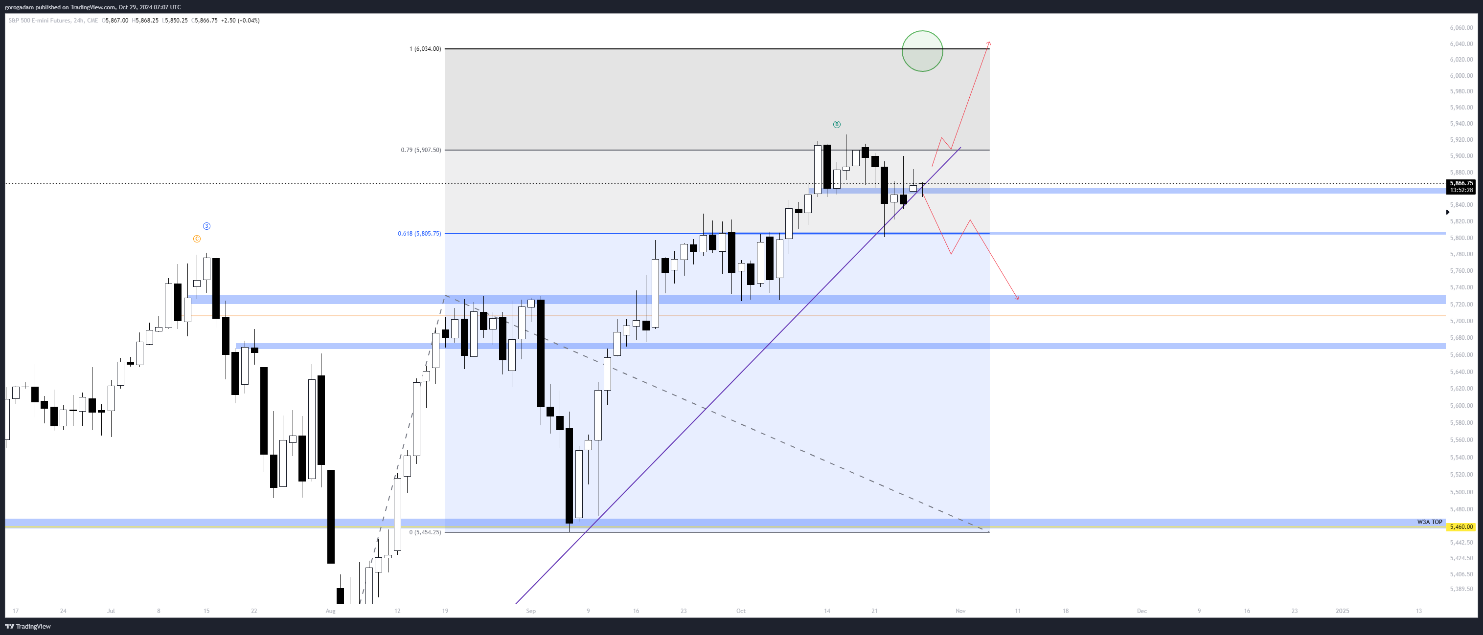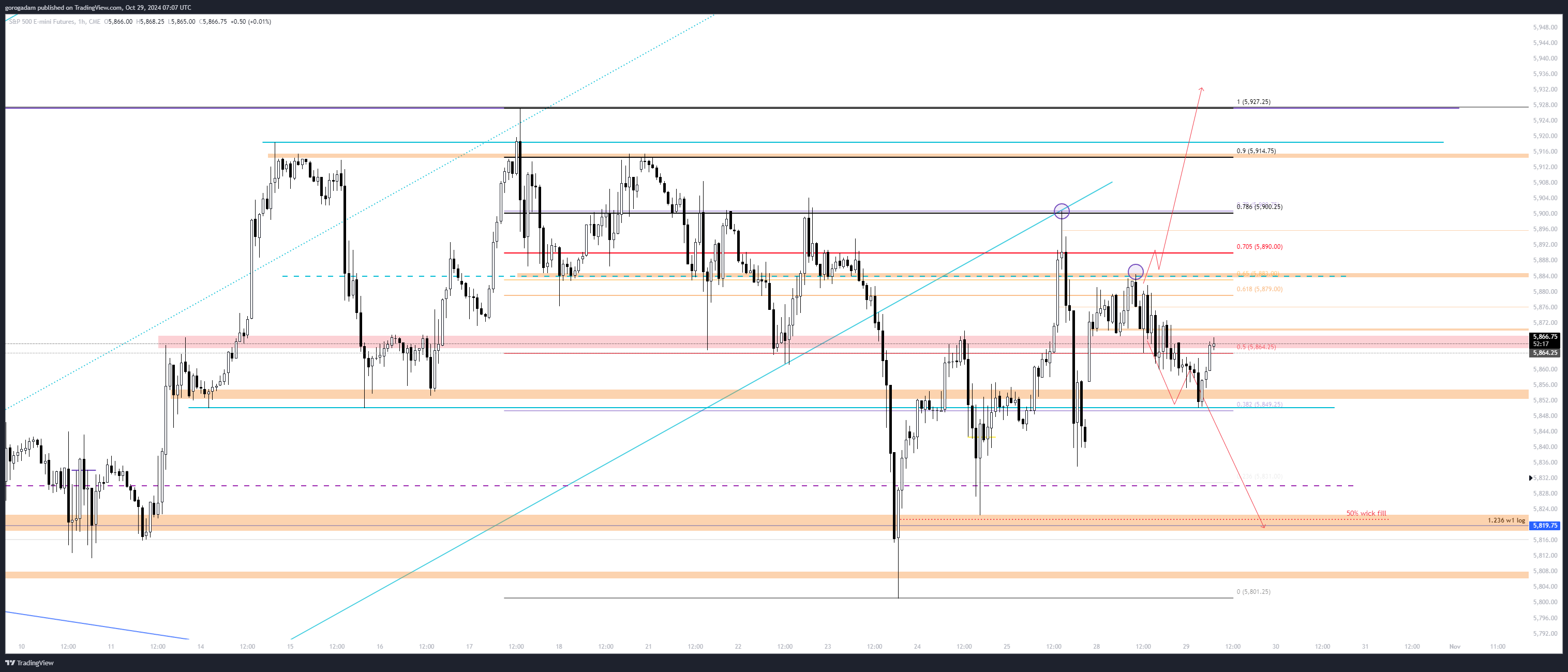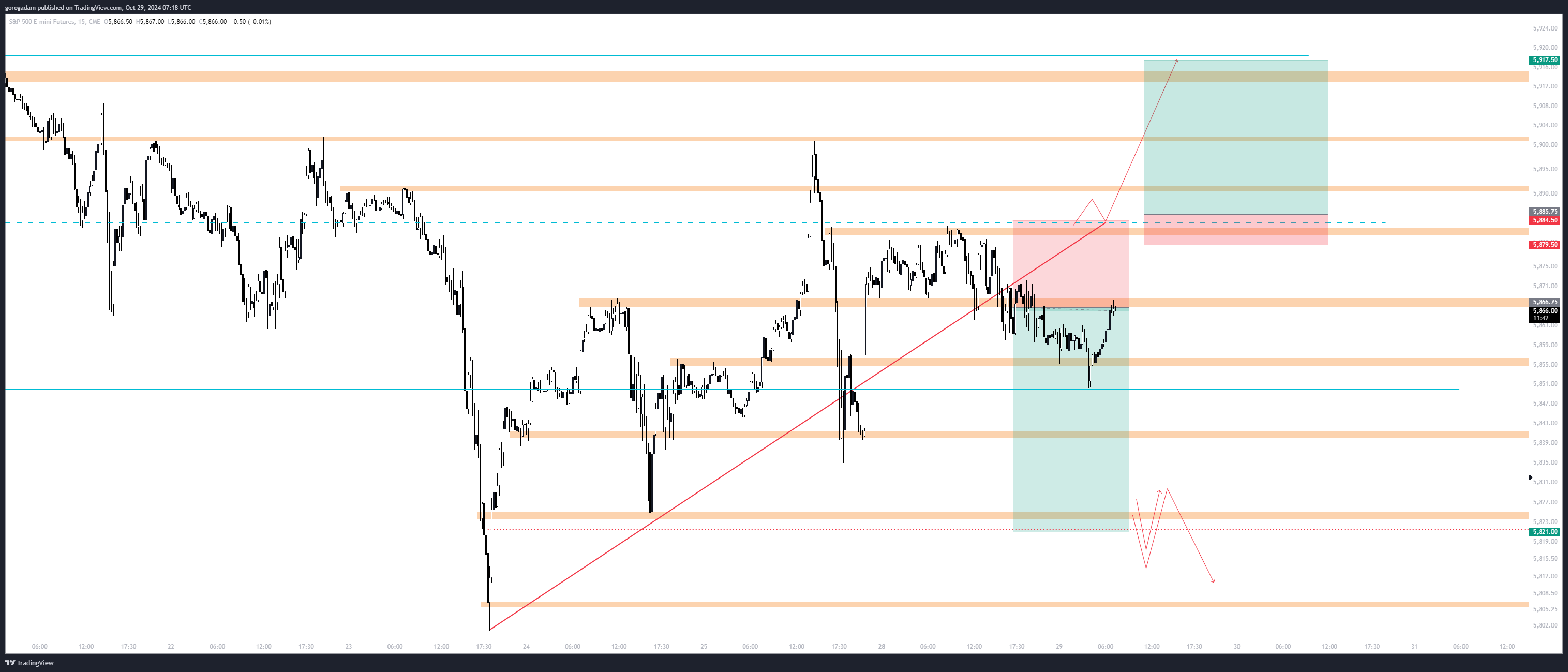 S&P 500 elemzés – INTRADAY: tegnap azt írtam, hogy jó short trigger lenne az 5866-os szint elvesztése, mivel így megtörne a piros trendvonal ÉS egy többször tesztelt szint is.
