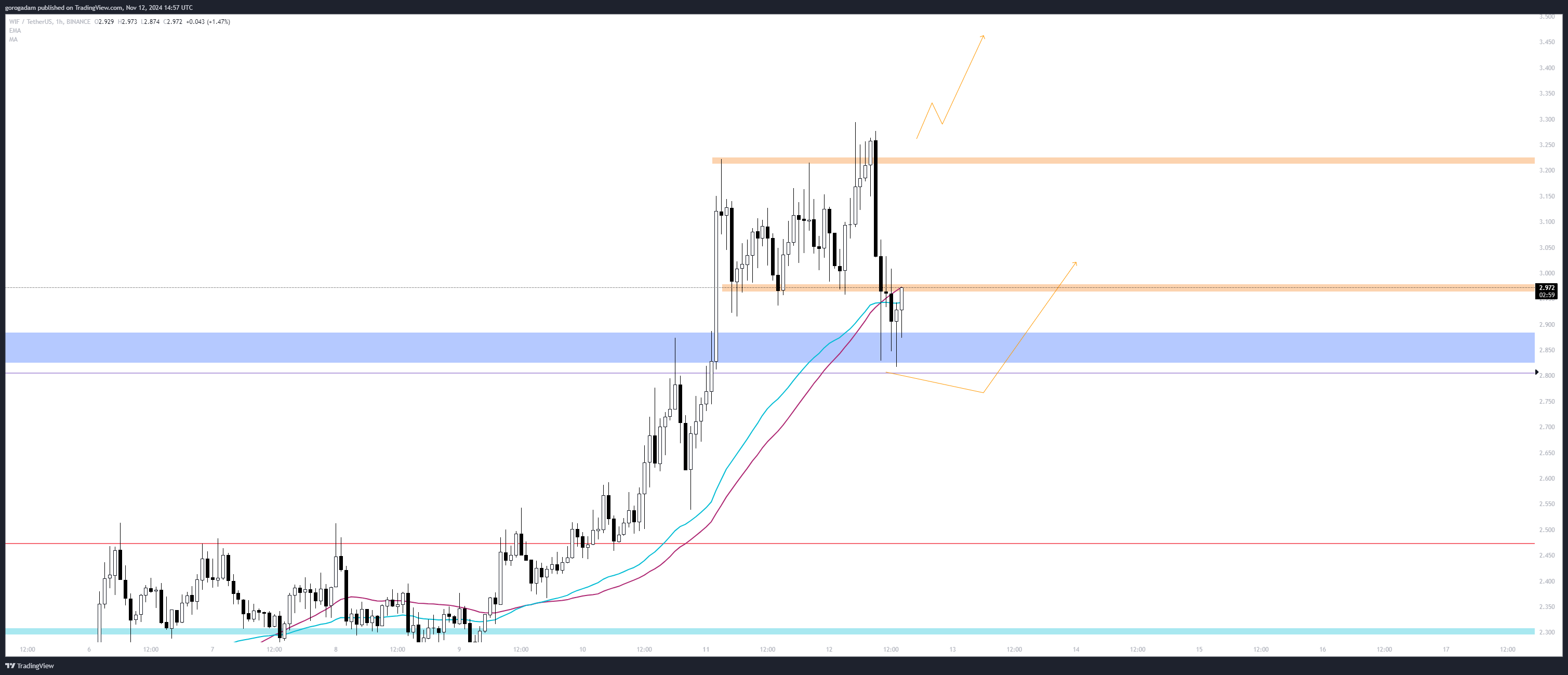 Ha ez a mozgás történik, vagyis elmegy a 3.879$-os szintig, akkor a teljes mozgás 0.382-es FIB visszahúzása 2.805-nél lenne, ezért lehetségesnek tartom, hogy a következő napokban még kiüti ezt a szintet, és utána kezd el emelkedni.