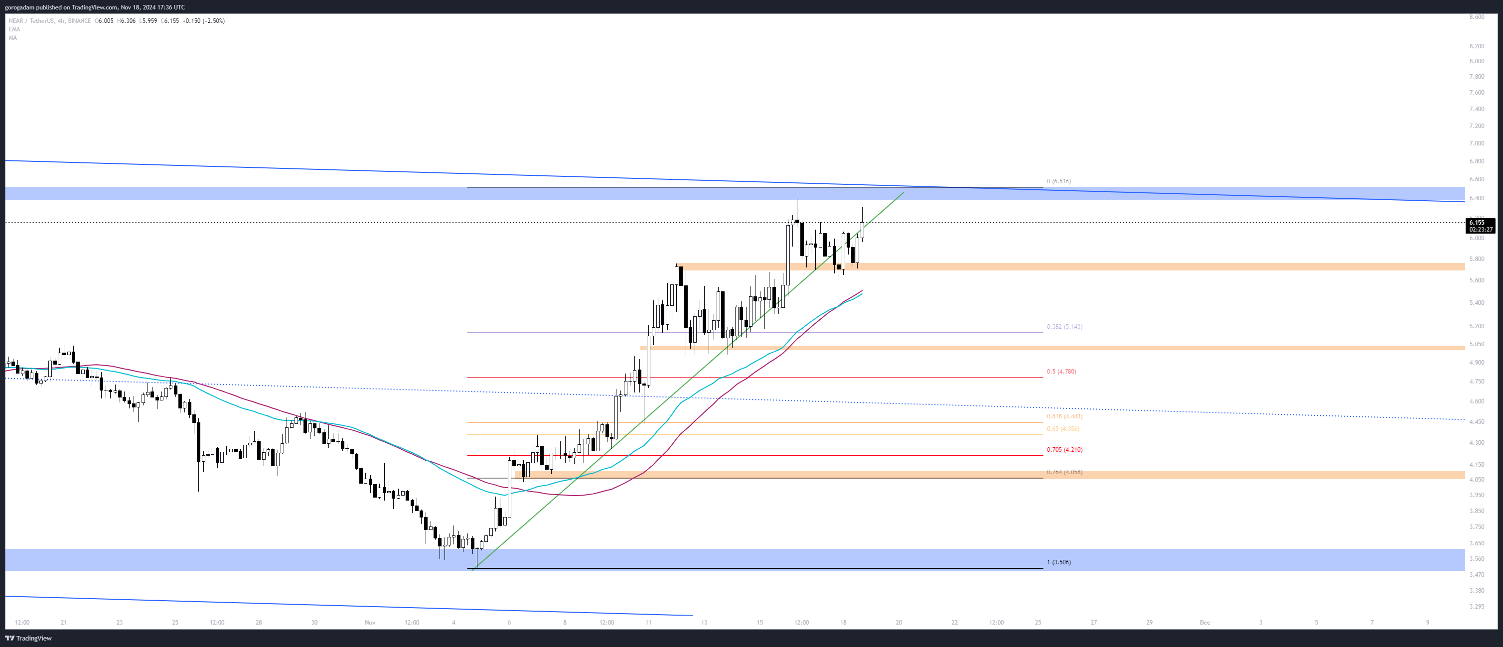 A legtöbb altnak 23 októberétől 24 márciusáig a III. hulláma volt, de úgy néz ki, hogy a NEAR-nek ez volt az I. hulláma, és az is elég jelentős volt (és ugye a III. hullám jellemzően jóval erősebb az elsőnél) – emiatt az extenziós szintek extrém értékeket is el tudnak érni, még a mostani duplázás után is.